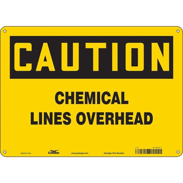Safety Sign, Horizontal Rectangle, Number of Printed Sides 1, English, Sign Format Traditional OSHA, Sign Legend Chemical Lines Overhead, Sign Legend Background Color Yellow, Sign Legend Style Text