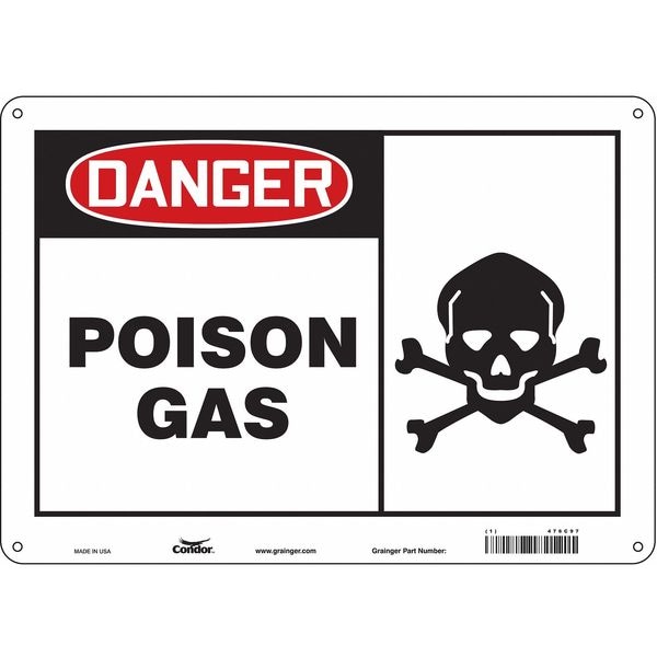 Safety Sign, Horizontal Rectangle, Number of Printed Sides 1, English, Sign Format Traditional OSHA, Sign Legend Poison Gas, Sign Legend Background Color White, Sign Legend Style Symbol and Text