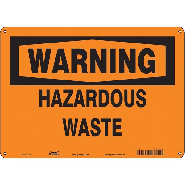 Safety Sign, Horizontal Rectangle, Number of Printed Sides 1, English, Sign Format Traditional OSHA, Sign Legend Hazardous Waste, Sign Legend Background Color Orange, Sign Legend Style Text