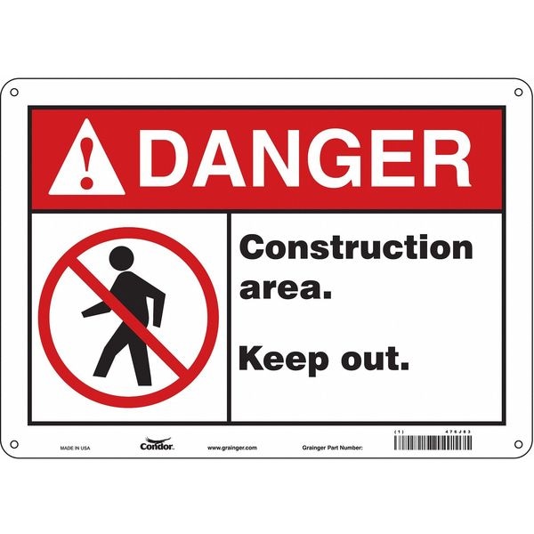 Safety Sign, Horizontal Rectangle, Number of Printed Sides 1, English, Sign Format ANSI/OSHA Format, Sign Legend Construction Area. Keep Out., Sign Legend Background Color White, Sign Legend Style Symbol and Text