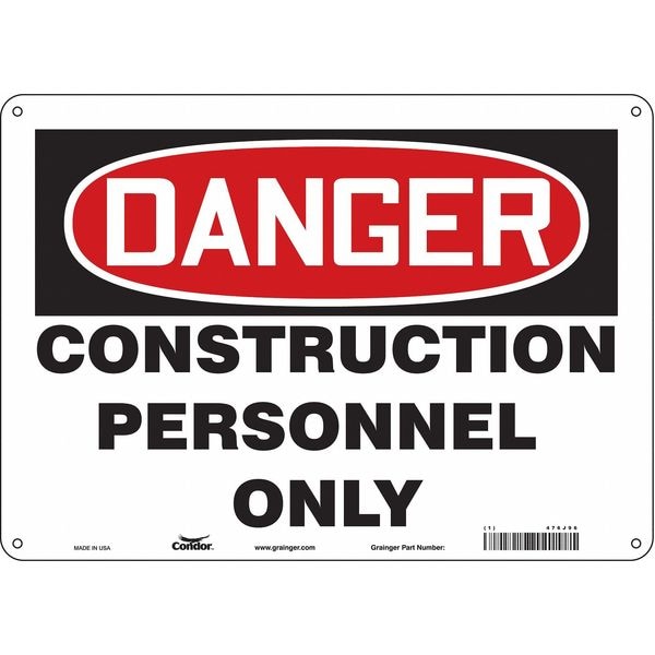 Safety Sign, Horizontal Rectangle, Number of Printed Sides 1, English, Sign Format Traditional OSHA, Sign Legend Construction Personnel Only, Sign Legend Background Color White, Sign Legend Style Text