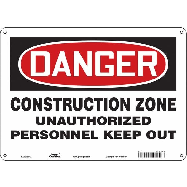 Safety Sign, Horizontal Rectangle, Number of Printed Sides 1, English, Sign Format Traditional OSHA, Sign Legend Construction Zone Unauthorized Personnel Keep Out, Sign Legend Background Color White, Sign Legend Style Text