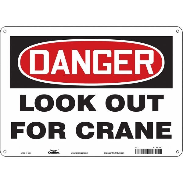 Safety Sign, Horizontal Rectangle, Number of Printed Sides 1, English, Sign Format Traditional OSHA, Sign Legend Look Out For Crane, Sign Legend Background Color White, Sign Legend Style Text