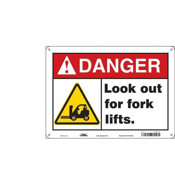 Safety Sign, Horizontal Rectangle, Number of Printed Sides 1, English, Sign Format ANSI/OSHA Format, Sign Legend Look Out For Fork Lifts., Sign Legend Background Color White, Sign Legend Style Symbol and Text