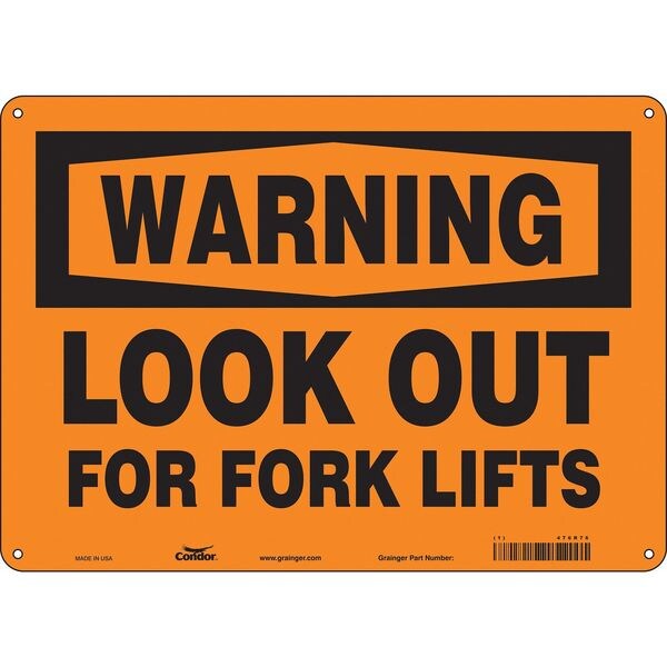Safety Sign, Horizontal Rectangle, Number of Printed Sides 1, English, Sign Format Traditional OSHA, Sign Legend Look Out For Fork Lifts, Sign Legend Background Color Orange, Sign Legend Style Text