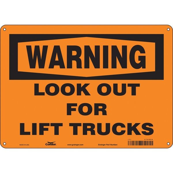 Safety Sign, Horizontal Rectangle, Number of Printed Sides 1, English, Sign Format Traditional OSHA, Sign Legend Look Out For Lift Trucks, Sign Legend Background Color Orange, Sign Legend Style Text