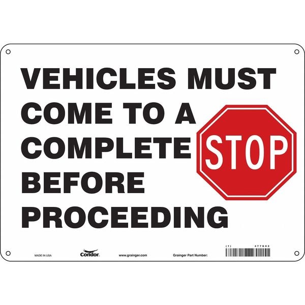 Safety Sign, Horizontal Rectangle, Number of Printed Sides 1, English, Sign Format Other Format, Sign Legend Vehicles Must Come To A Complete Stop Before Proceeding, Sign Legend Background Color White, Sign Legend Style Symbol and Text