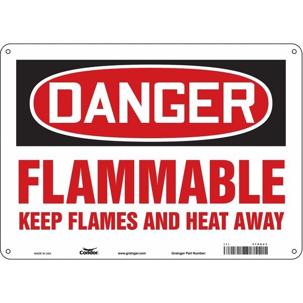 Safety Sign, Horizontal Rectangle, Number of Printed Sides 1, English, Sign Format Traditional OSHA, Sign Legend Flammable Keep Flames And Heat Away, Sign Legend Background Color White, Sign Legend Style Text