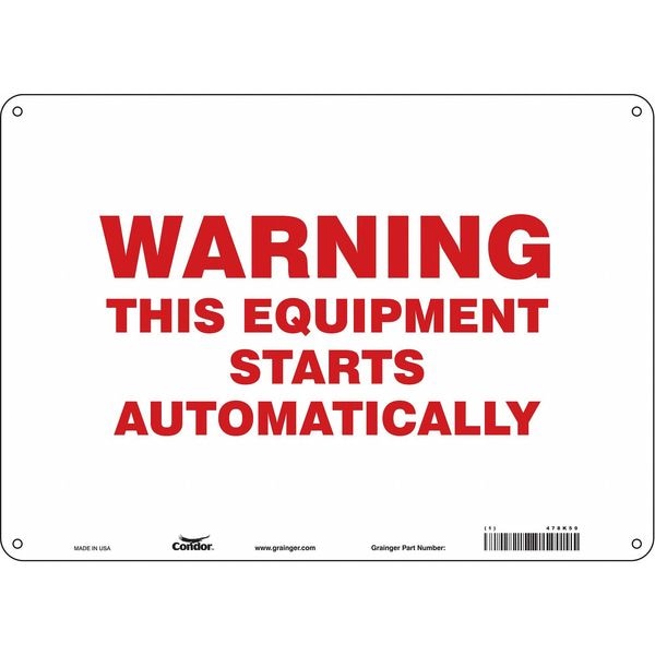 Safety Sign, Horizontal Rectangle, Number of Printed Sides 1, English, Sign Format Other Format, Sign Legend Warning This Equipment Starts Automatically, Sign Legend Background Color White, Sign Legend Style Text