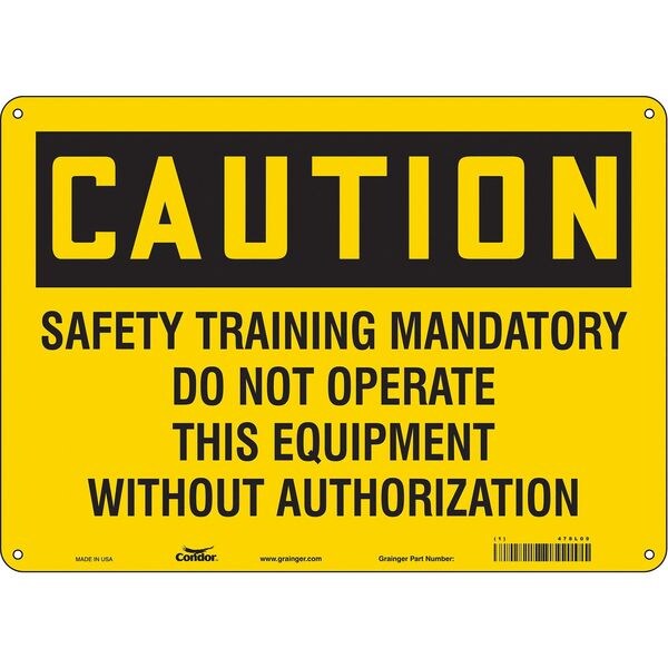 Safety Sign, Horizontal Rectangle, Number of Printed Sides 1, English, Sign Format Traditional OSHA, Sign Legend Safety Training Mandatory Do Not Operate This Equipment Without Authorization, Sign Legend Background Color Yellow, Sign Legend Style Text