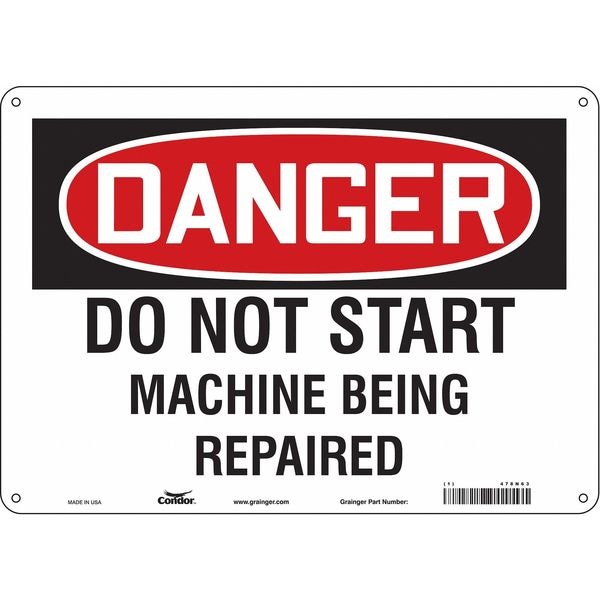 Safety Sign, Horizontal Rectangle, Number of Printed Sides 1, English, Sign Format Traditional OSHA, Sign Legend Do Not Start Machine Being Repaired, Sign Legend Background Color White, Sign Legend Style Text