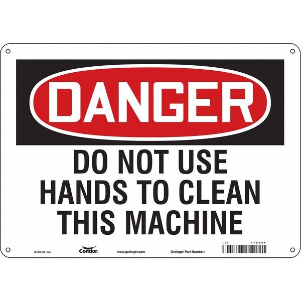 Safety Sign, Horizontal Rectangle, Number of Printed Sides 1, English, Sign Format Traditional OSHA, Sign Legend Do Not Use Hands To Clean This Machine, Sign Legend Background Color White, Sign Legend Style Text