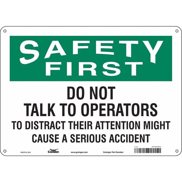 Safety Sign, Horizontal Rectangle, Number of Printed Sides 1, English, Sign Format Traditional OSHA, Sign Legend Do Not Talk To Operators To Distract Their Attention Might Cause A Serious Accident, Sign Legend Background Color White, Sign Legend Style Text