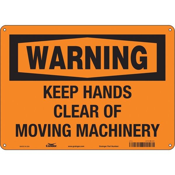 Safety Sign, Horizontal Rectangle, Number of Printed Sides 1, English, Sign Format Traditional OSHA, Sign Legend Keep Hands Clear Of Moving Machinery, Sign Legend Background Color Orange, Sign Legend Style Text