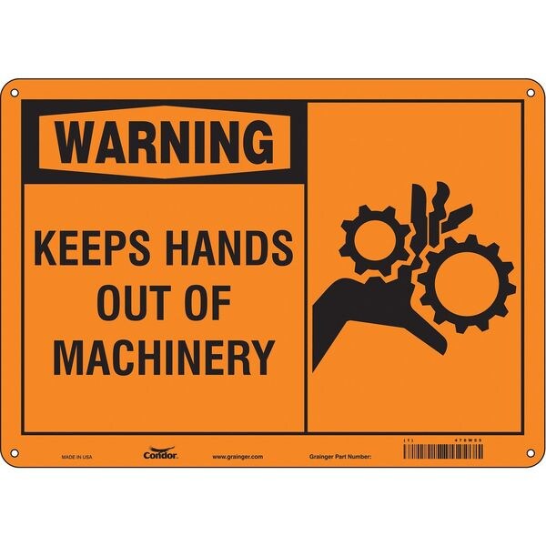 Safety Sign, Horizontal Rectangle, Number of Printed Sides 1, English, Sign Format Traditional OSHA, Sign Legend Keep Hands Out Of Machinery, Sign Legend Background Color Orange, Sign Legend Style Symbol and Text
