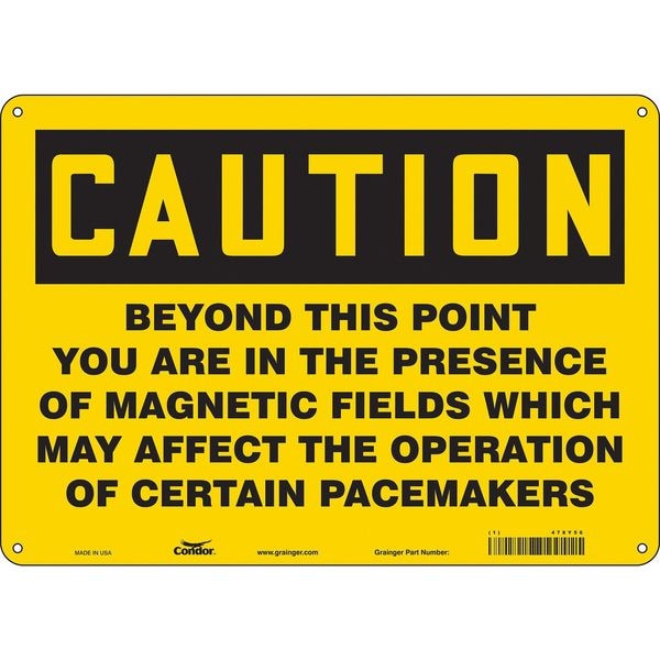 Safety Sign, Horizontal Rectangle, Number of Printed Sides 1, English, Sign Format Traditional OSHA, Sign Legend Beyond This Point You Are In The Presence Of Magnetic Fields Which May Affect The Operation Of Certain Pacemakers., Sign Legend Background Color Yellow, Sign Legend Style Text