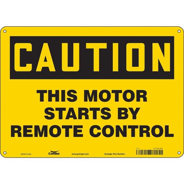 Safety Sign, Horizontal Rectangle, Number of Printed Sides 1, English, Sign Format Traditional OSHA, Sign Legend This Motor Starts By Remote Control, Sign Legend Background Color Yellow, Sign Legend Style Text