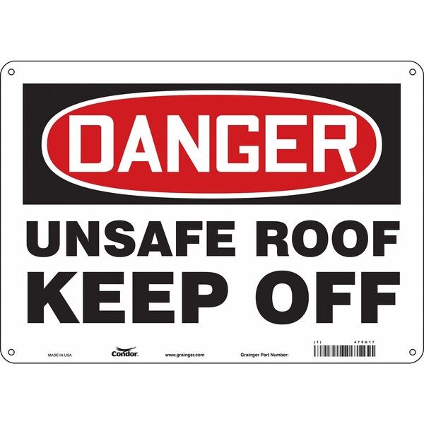 Safety Sign, Horizontal Rectangle, Number of Printed Sides 1, English, Sign Format Traditional OSHA, Sign Legend Unsafe Roof Keep Off, Sign Legend Background Color White, Sign Legend Style Text