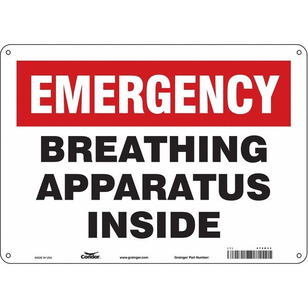 Safety Sign, Horizontal Rectangle, Number of Printed Sides 1, English, Sign Legend Breathing Apparatus Inside, Sign Legend Background Color Red, White, Sign Legend Style Text