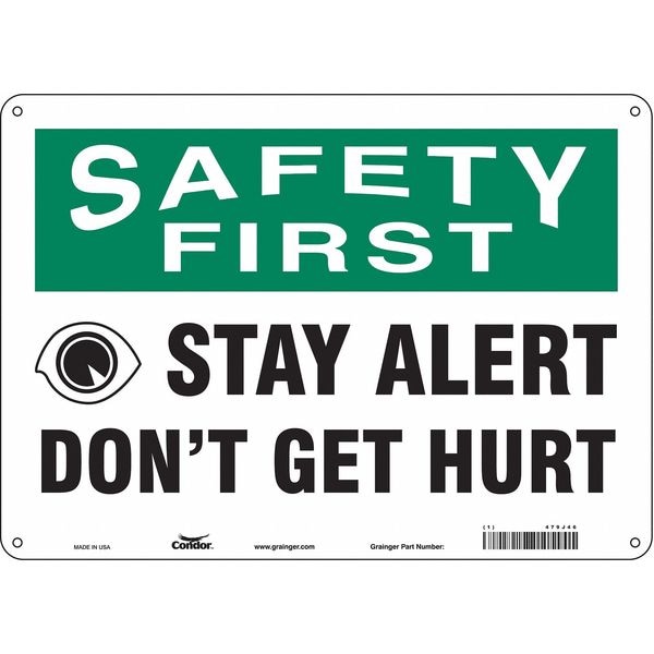Safety Sign, Horizontal Rectangle, Number of Printed Sides 1, English, Sign Format Traditional OSHA, Sign Legend Stay Alert Don'T Get Hurt, Sign Legend Background Color White, Sign Legend Style Symbol and Text
