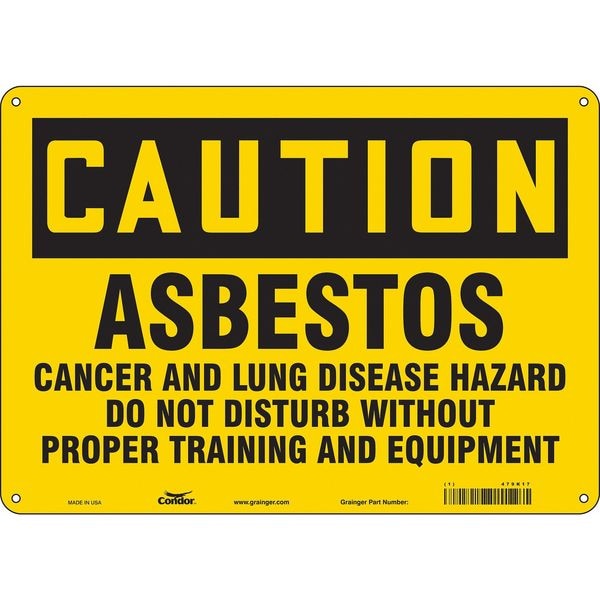 Safety Sign, Horizontal Rectangle, Number of Printed Sides 1, English, Sign Format Traditional OSHA, Sign Legend Asbestos Cancer And Lung Disease Hazard Do Not Disturb Without Proper Training And Equipment, Sign Legend Background Color Yellow, Sign Legend Style Text