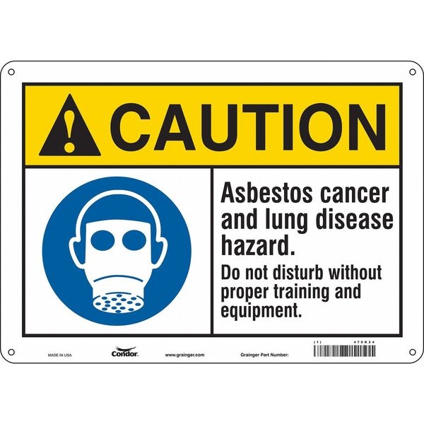 Safety Sign, Horizontal Rectangle, Number of Printed Sides 1, English, Sign Format ANSI/OSHA Format, Sign Legend Asbestos Cancer And Lung Disease Hazard. Do Not Disturb Without Proper Training And Equipment., Sign Legend Background Color White, Sign Legend Style Symbol and Text