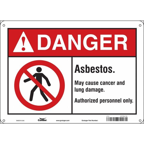 Safety Sign, Horizontal Rectangle, Number of Printed Sides 1, English, Sign Format ANSI/OSHA Format, Sign Legend Asbestos. May Cause Cancer And Lung Damage. Authorized Personnel Only., Sign Legend Background Color White, Sign Legend Style Symbol and Text