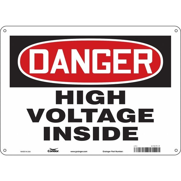 Safety Sign, Horizontal Rectangle, Number of Printed Sides 1, English, Sign Format Traditional OSHA, Sign Legend High Voltage Inside, Sign Legend Background Color White, Sign Legend Style Text
