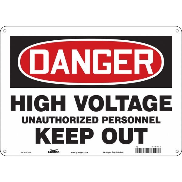 Safety Sign, Horizontal Rectangle, Number of Printed Sides 1, English, Sign Format Traditional OSHA, Sign Legend High Voltage Unauthorized Personnel Keep Out, Sign Legend Background Color White, Sign Legend Style Text