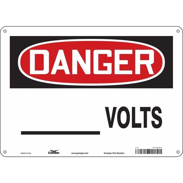 Safety Sign, Horizontal Rectangle, Number of Printed Sides 1, English, Sign Format Traditional OSHA, Sign Legend ___ Volts, Sign Legend Background Color White, Sign Legend Style Text
