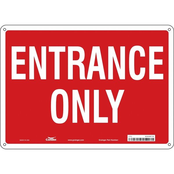Safety Sign, Horizontal Rectangle, Number of Printed Sides 1, English, Sign Format Other Format, Sign Legend Entrance Only, Sign Legend Background Color Red, White, Sign Legend Style Text