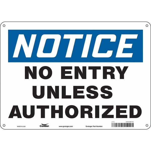 Safety Sign, Horizontal Rectangle, Number of Printed Sides 1, English, Sign Format Traditional OSHA, Sign Legend No Entry Unless Authorized, Sign Legend Background Color White, Sign Legend Style Text