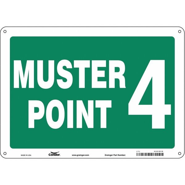 Safety Sign, Horizontal Rectangle, Number of Printed Sides 1, English, Sign Format Other Format, Sign Legend Muster Point 4, Sign Legend Background Color Green, Sign Legend Style Text