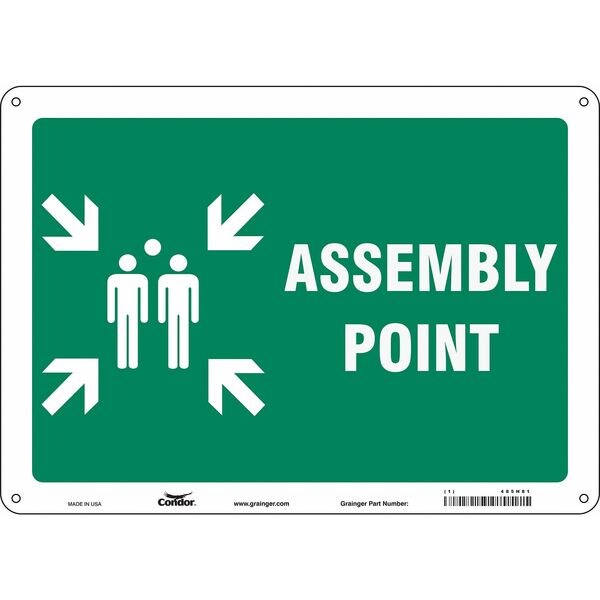 Safety Sign, Horizontal Rectangle, Number of Printed Sides 1, English, Sign Format Other Format, Sign Legend Assembly Point, Sign Legend Background Color Green, Sign Legend Style Symbol and Text