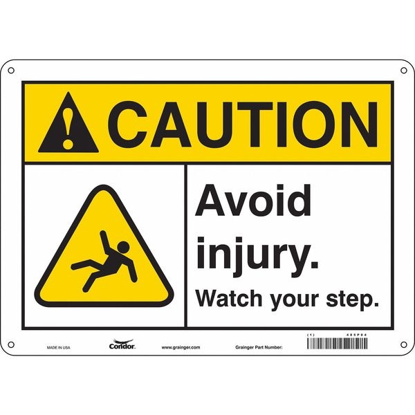 Safety Sign, Horizontal Rectangle, Number of Printed Sides 1, English, Sign Format ANSI/OSHA Format, Sign Legend Avoid Injury. Watch Your Step., Sign Legend Background Color White, Sign Legend Style Symbol and Text