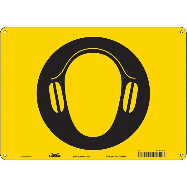 Safety Sign, Horizontal Rectangle, Number of Printed Sides 1, English, Sign Format Other Format, Sign Legend Hearing Protection Symbol, Sign Legend Background Color Yellow, Sign Legend Style Symbol