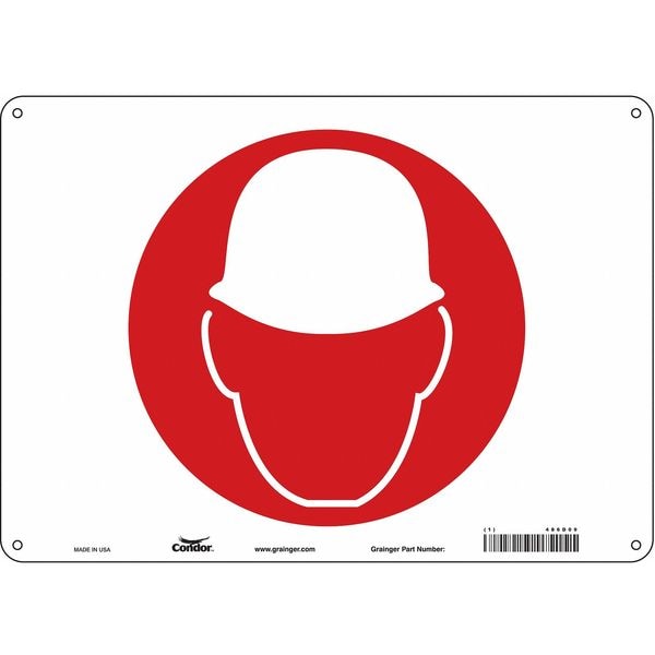 Safety Sign, Horizontal Rectangle, Number of Printed Sides 1, English, Sign Format Other Format, Sign Legend Hard Hat, Sign Legend Background Color White, Sign Legend Style Symbol