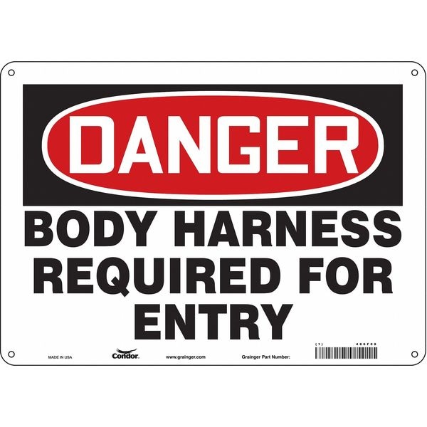 Safety Sign, Horizontal Rectangle, Number of Printed Sides 1, English, Sign Format Traditional OSHA, Sign Legend Body Harness Required For Entry, Sign Legend Background Color White, Sign Legend Style Text