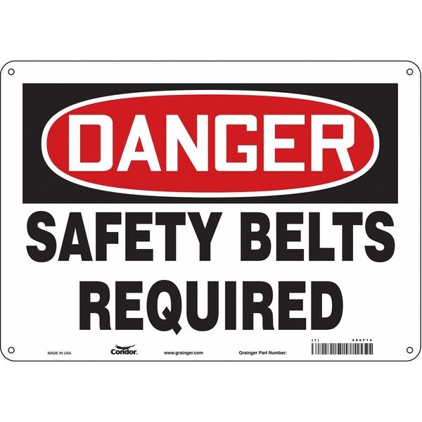 Safety Sign, Horizontal Rectangle, Number of Printed Sides 1, English, Sign Format Traditional OSHA, Sign Legend Safety Belts Required, Sign Legend Background Color White, Sign Legend Style Text