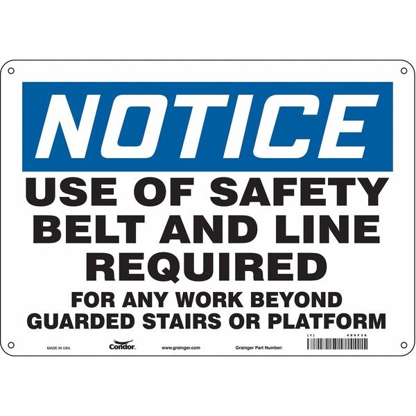 Safety Sign, Horizontal Rectangle, Number of Printed Sides 1, English, Sign Format Traditional OSHA, Sign Legend Use Of Safety Belt And Line Required For Any Work Beyond Guarded Stairs Or Platform, Sign Legend Background Color White, Sign Legend Style Text