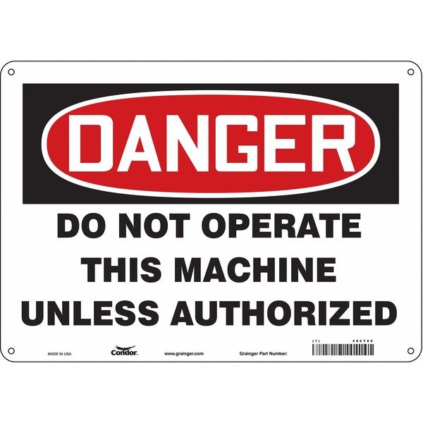 Safety Sign, Horizontal Rectangle, Number of Printed Sides 1, English, Sign Format Traditional OSHA, Sign Legend Do Not Operate This Machine Unless Authorized, Sign Legend Background Color White, Sign Legend Style Text