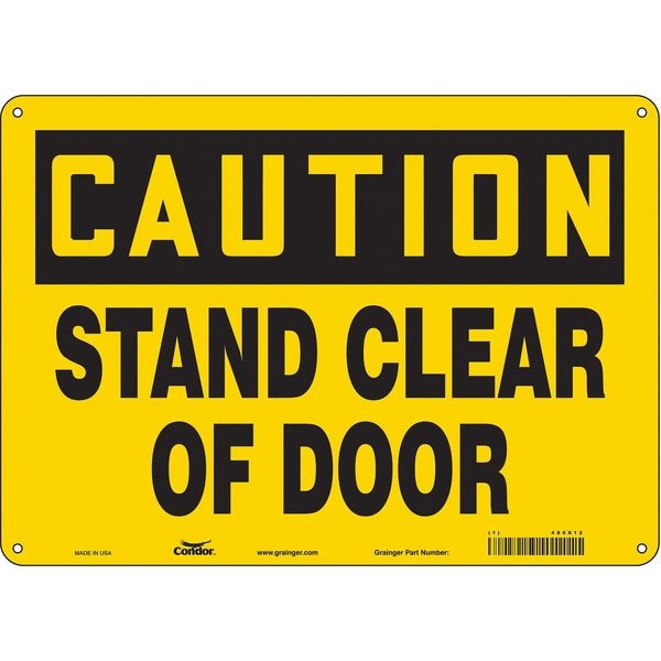Safety Sign, Horizontal Rectangle, Number of Printed Sides 1, English, Sign Legend Stand Clear Of Door, Sign Legend Background Color Yellow, Sign Legend Style Text