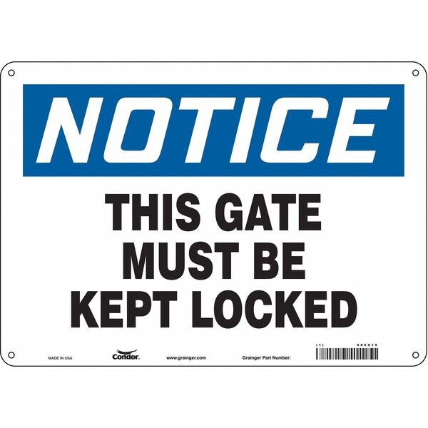 Safety Sign, Horizontal Rectangle, Number of Printed Sides 1, English, Sign Legend This Gate Must Be Kept Locked, Sign Legend Background Color White, Sign Legend Style Text