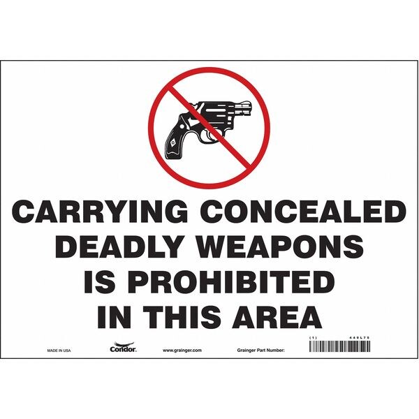 Safety Sign, Horizontal Rectangle, Number of Printed Sides 1, English, Sign Legend Carrying Concealed Deadly Weapons Is Prohibited In This Area, Sign Legend Background Color White, Sign Legend Style Symbol and Text