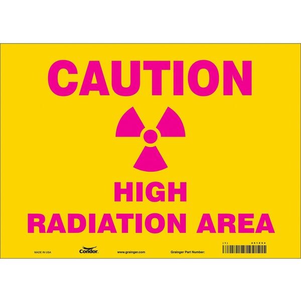 Safety Sign, Horizontal Rectangle, Number of Printed Sides 1, English, Sign Format Other Format, Sign Legend Caution High Radiation Area, Sign Legend Background Color Yellow, Sign Legend Style Symbol and Text