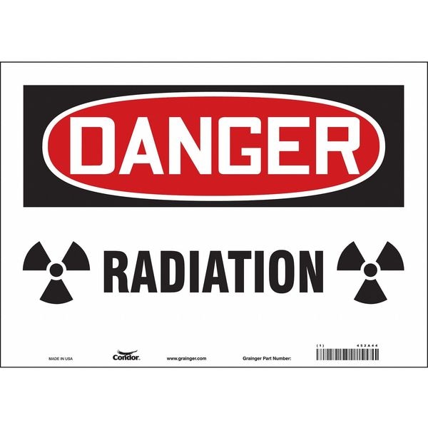 Safety Sign, Horizontal Rectangle, Number of Printed Sides 1, English, Sign Format Traditional OSHA, Sign Legend Radiation, Sign Legend Background Color White, Sign Legend Style Symbol and Text