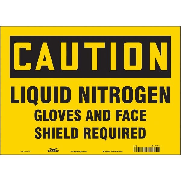 Safety Sign, Horizontal Rectangle, Number of Printed Sides 1, English, Sign Format Traditional OSHA, Sign Legend Liquid Nitrogen Gloves And Face Shield Required, Sign Legend Background Color Yellow, Sign Legend Style Text