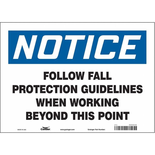 Safety Sign, Horizontal Rectangle, Number of Printed Sides 1, English, Sign Format Traditional OSHA, Sign Legend Follow Fall Protection Guidelines When Working Beyond This Point, Sign Legend Background Color White, Sign Legend Style Text