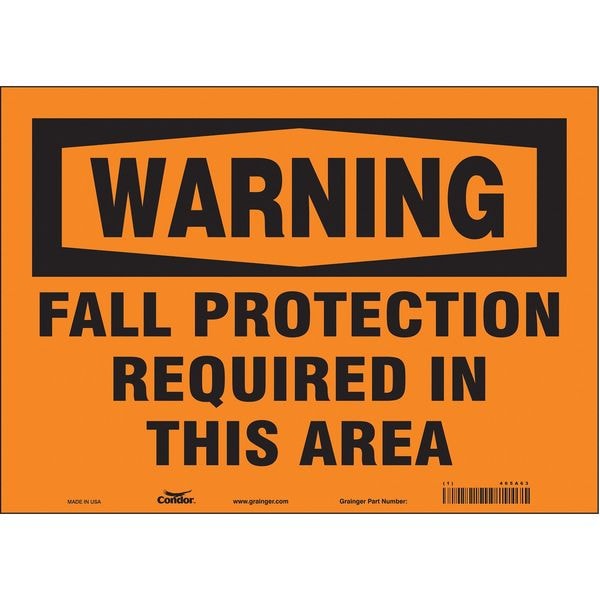 Safety Sign, Horizontal Rectangle, Number of Printed Sides 1, English, Sign Format Traditional OSHA, Sign Legend Fall Protection Required In This Area, Sign Legend Background Color Orange, Sign Legend Style Text