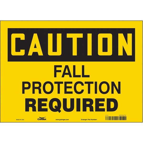 Safety Sign, Horizontal Rectangle, Number of Printed Sides 1, English, Sign Format Traditional OSHA, Sign Legend Fall Protection Required, Sign Legend Background Color Yellow, Sign Legend Style Text